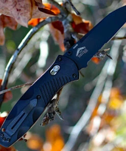 Benchmade Knives Benchmade 595BK Mini Boost, 3.1″ CPM-S30V Plain Blade, Black/Gray Grivory Handle