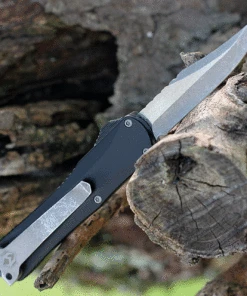 Heretic Knives Heretic Manticore S OTF Auto – Black Alum. (2.62″ Elmax Bowie Battleworn) HO22B-5A