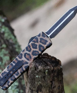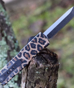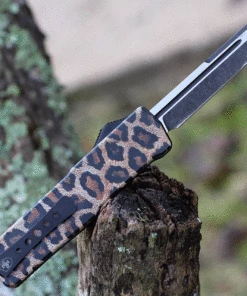 Templar Knife Co. Templar Premium Lightweight Small OTF -Alum. Leopard (3″ D2 Blk Tanto) SA-LPD-22-1