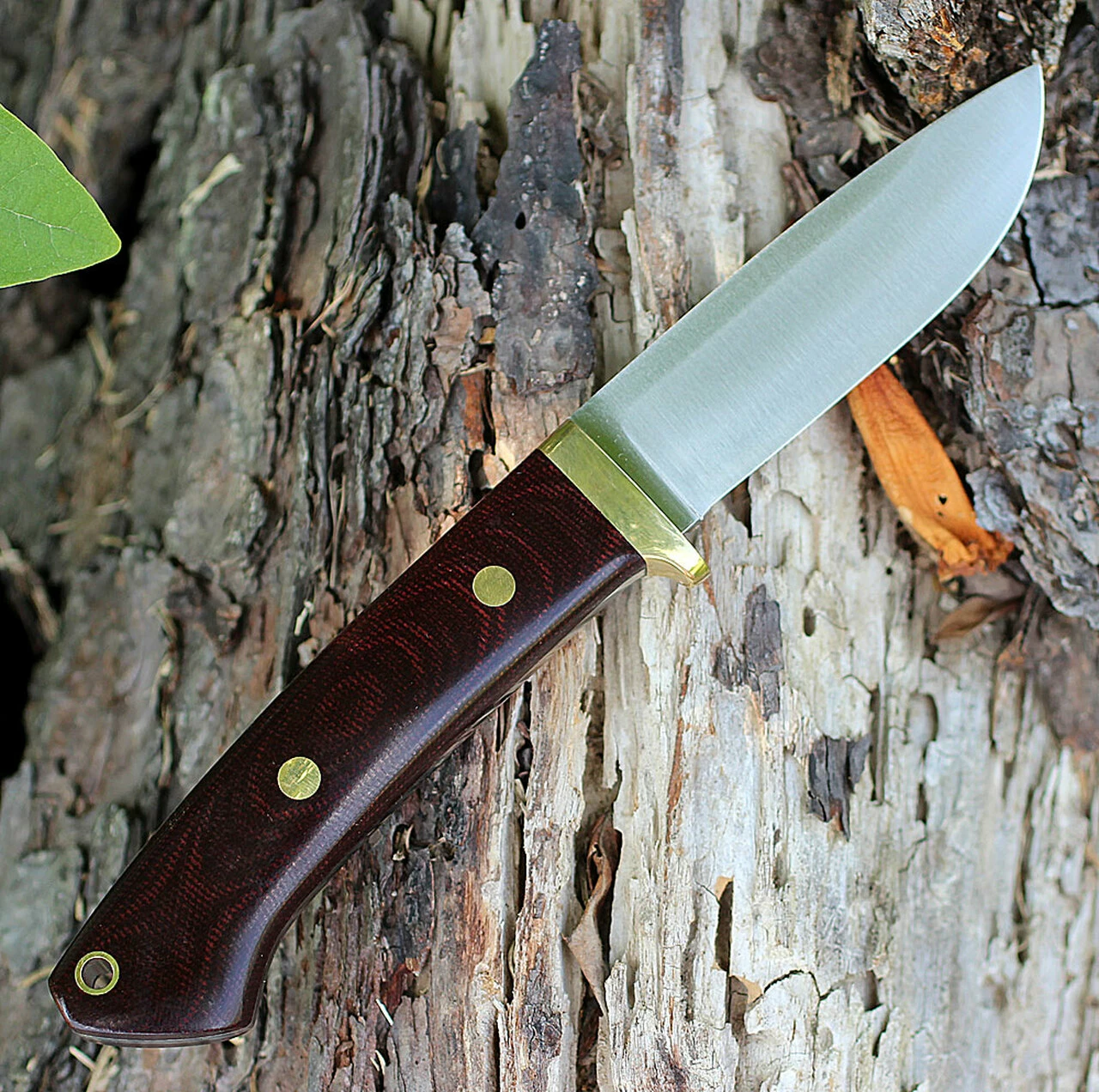 Bark River 02116MBU Classic Drop Point Hunter, 3.7″ A-2 Steel, Burgundy Canvas Micarta
