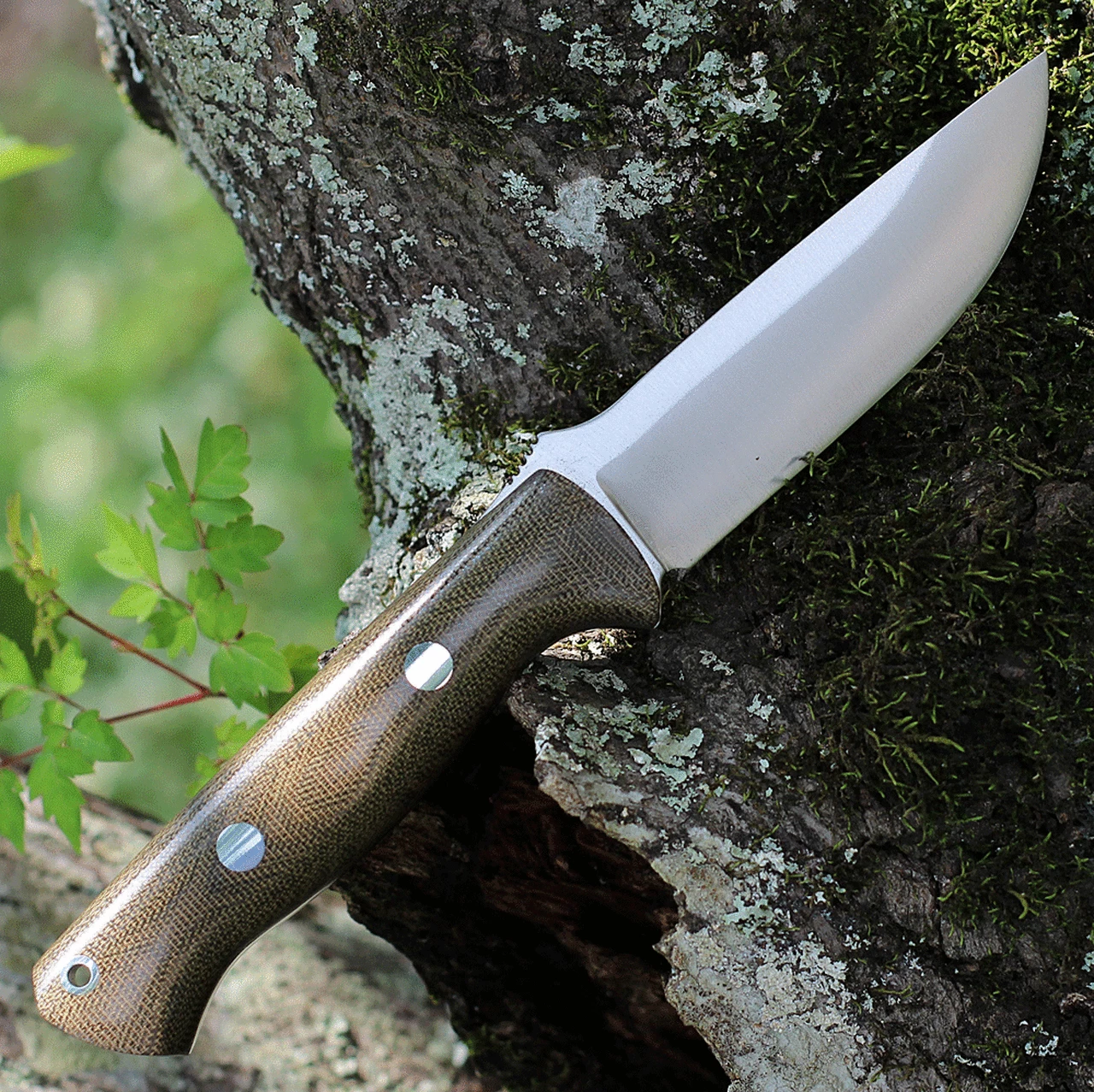 Bark River Knives Bravo 1 (07-122M-GC), 4.25″ CPM-3V Satin Drop Point Fixed Blade, Green Canvas Micarta Handle