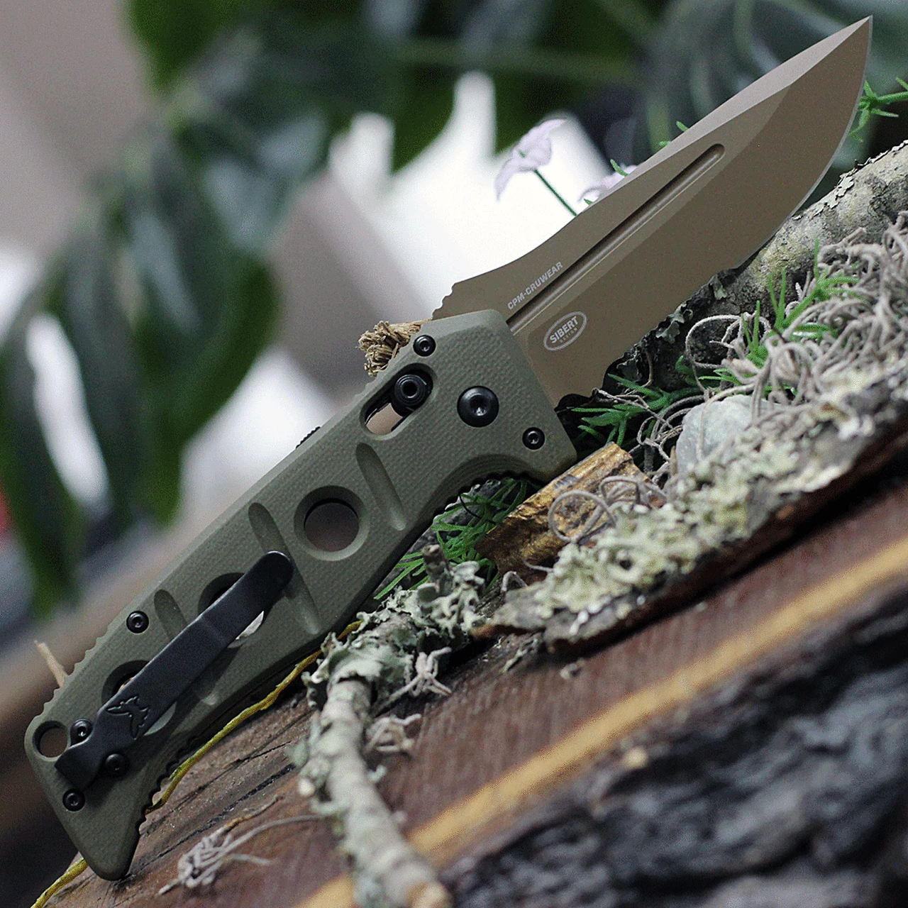 Benchmade 2750SFE-2 Auto Adamas, 3.78″ CPM-CruWear Flat Earth Serrated Blade, Olive Drab G10 Handles