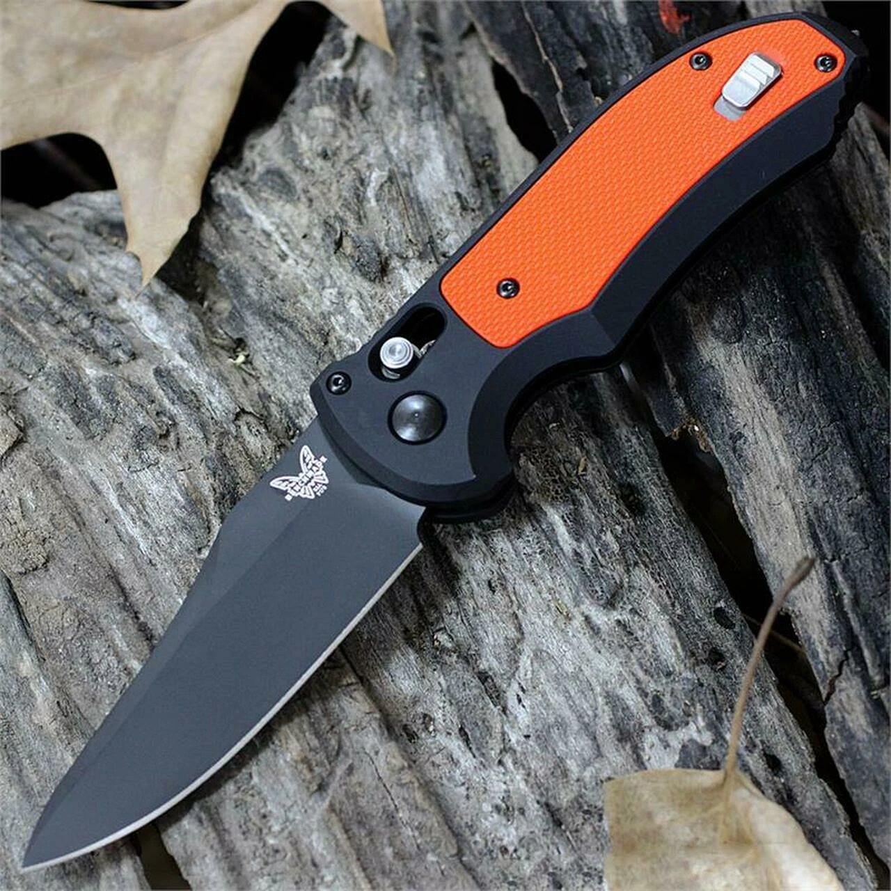 Benchmade Auto Triage 9170BK-ORG, 3.58 in. N680 Stainless Blade, Aluminum and G10 Handle, Black Plain Edge