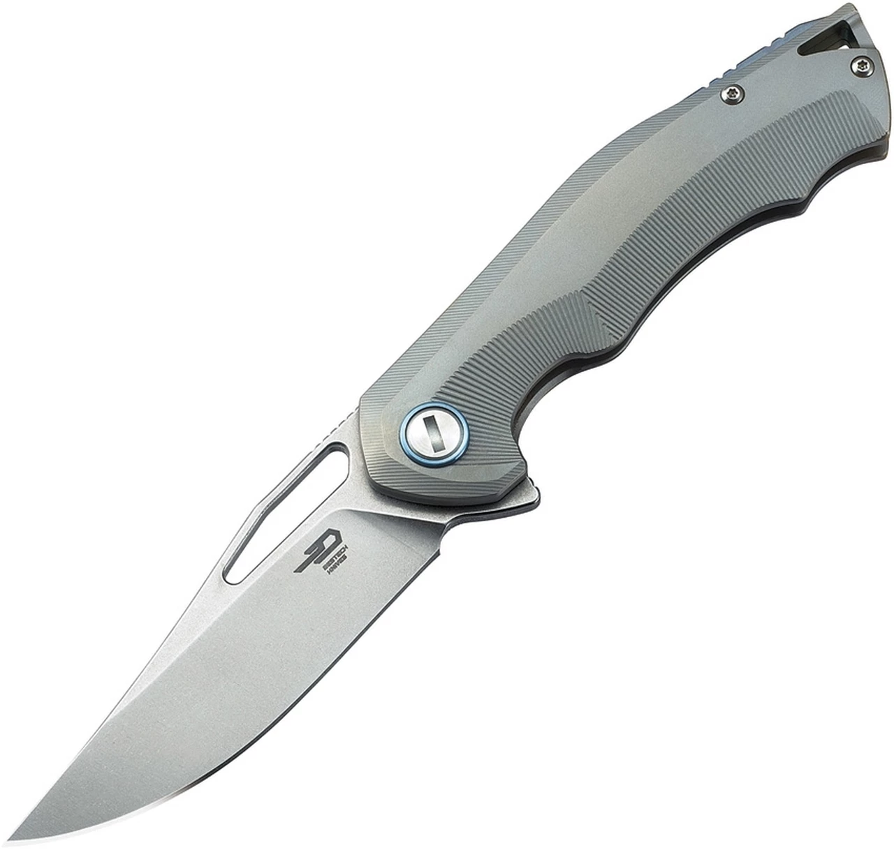 Bestech Knives BTKT1708B Tercel Frame Lock, 3.50″ CPM-S35VN Stonewash Blade, Gray Titanium Handle