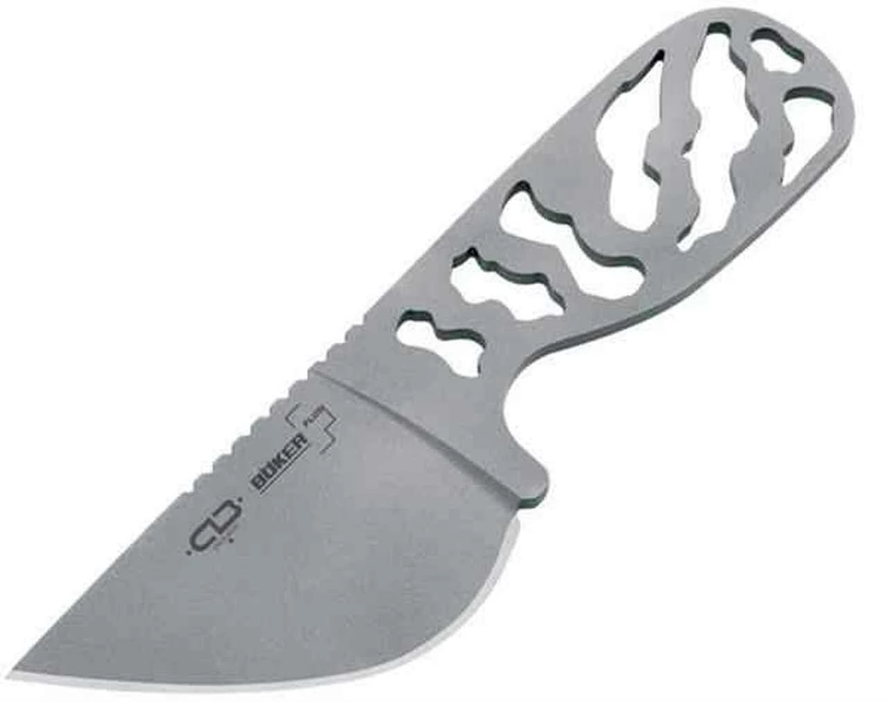This interesting combination of modern age and classic style is brought to you by Chad Los Banos. With his new fixed blade, Chad combines the standard diagonal edge of the Japanese Kiridashi with a belly-curve edge towards the tip, thereby boosting its versatility to a major extent. This innovative blade is made of 440C stainless steel with skeletonized handle. The package comes complete with a black Kydex neck sheath and ball chain. Tek-Lok compatible (not included).
