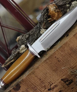 Bark River Knives Teddy Fixed Blade 08-114-SL, 6.25″ A2 Satin Plain Blade, Stacked Leather Handle