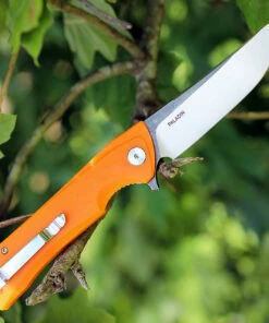 Bestech Platypus BG28B Flipper Knife, 3.43″ D2 Two-Tone Sheepsfoot Blade, Milled Orange G-10 Handle