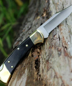 Buck Knives Buck Auto 112BRSA, 3″ Satin 420HC SS Plain Blade, Macassar Ebony Dymondwood Handle