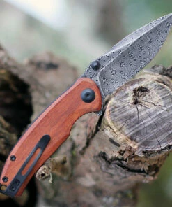 CIVIVI Knives CIVIVI Plethiros C904DS-2, 3.5″ Damascus Satin Plain Blade, Golden Sandalwood Handles