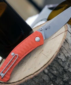 GiantMouse ACE Iona Liner Lock, 2.9″ Satin M390 Drop Point Blade, Anso Textured Orange G-10 Handle