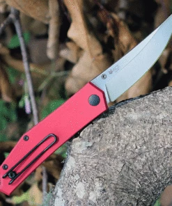GiantMouse Giant Mouse Ace Clyde-Red-Alu, 3.0″ N690 Steel Satin Plain Blade, Red Aluminum Handle