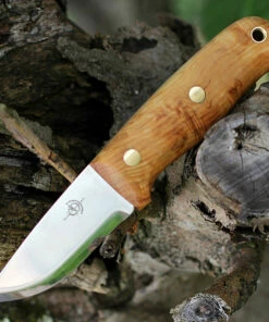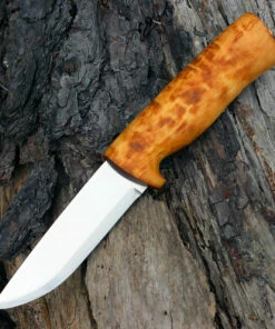 Helle Bleja 625, 3.35″ Triple Laminated Stainless Steel Drop Point Plain Blade, Curly Birch Handle