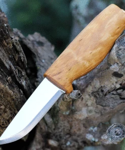 Helle Gro Fixed Blade – Birch Wood (3.5″ Sandvik 12C27 Satin) Leather Sheath