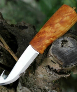 Helle No. 53 Veidemann Specialty Knife, 3.50″ Triple Laminated SS, Curly Birch Handle