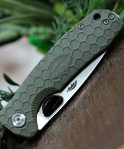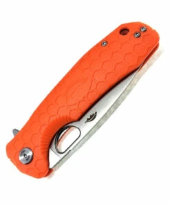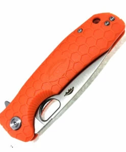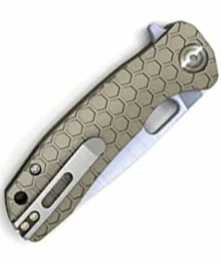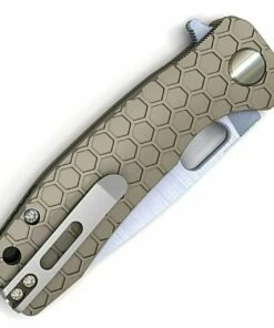 Honey Badger Knives Medium D2 Flipper HB1015, 3.19″ D2 Satin Drop Point Plain Blade, Tan FRN Handle