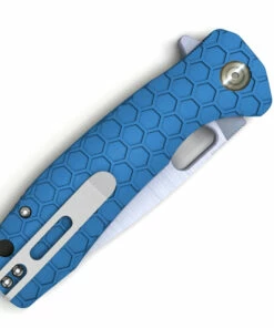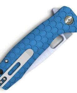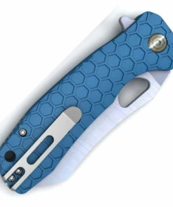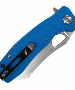 Honey Badger Knives Medium D2 Flipper HB1058, 3.19″ D2 Satin Drop Point Plain Blade, Blue FRN Handle