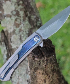 Kansept Knives Kratos K1024A3, 3.79″ CPM-S35VN Satin Plain Blade, Gray Titanium & Timascus Handles