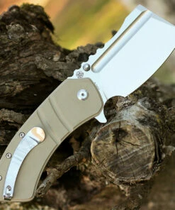 Kansept Knives Kansept XL Korvid Flipper – Light Sand G10 (3.6″ Satin 154CM Cleaver) T1030A5