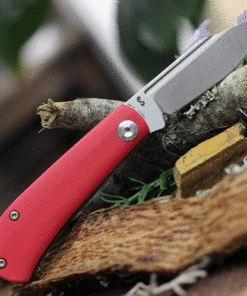 Kansept Knives KT2026S2 Swan Bevy Slip Joint, 2.45″ 154CM Satin Plain Blade, Red G-10 Handle
