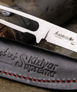 Kizlyar Supreme Aggressor Mini Fixed Blade – (2″ AUS-8 Satin) Blk Leather
