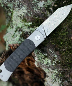 QSP Knife Falcon Slipjoint QS133-A, 3″ Damascus Plain blade, Titanium Handle w/ Carbon Fiber Inlay
