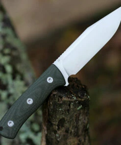 QSP Knife Bison Fixed Blade QS134-C, 4.5″ D2 Satin Plain Blade, Green Linen Miarta Handle