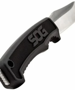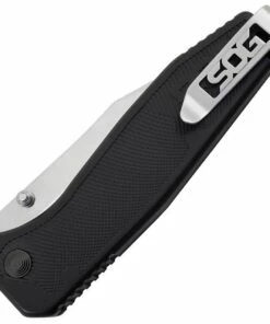 SOG FLA1001CP Flare, 3.5″ 8Cr13MoV Satin Polished Clip Point Plain Blade, Black GRN Handle