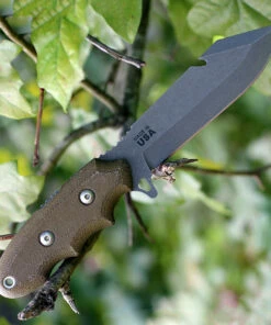 TOPS Backpacker’s Bowie Knife BPB-01, 4.50″ 1095 Carbon Steel Blade, Green Canvas Micarta Handle