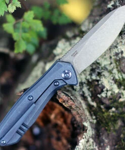 We Knife Co. We Knife 2005C Mote, 2.66″ CPM S35VN Gray Stonewash Plain Blade, Black Titanium Handle