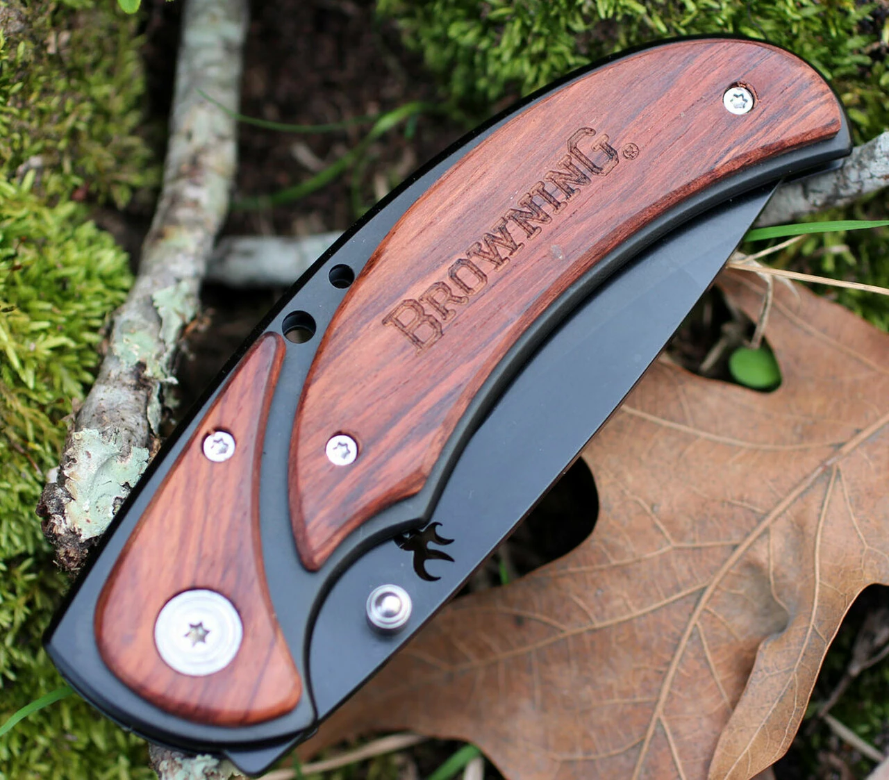 Browning Black/Cocobolo Framelock, 3.5″ Black Stainless Plain Blade, Cocobolo Handle