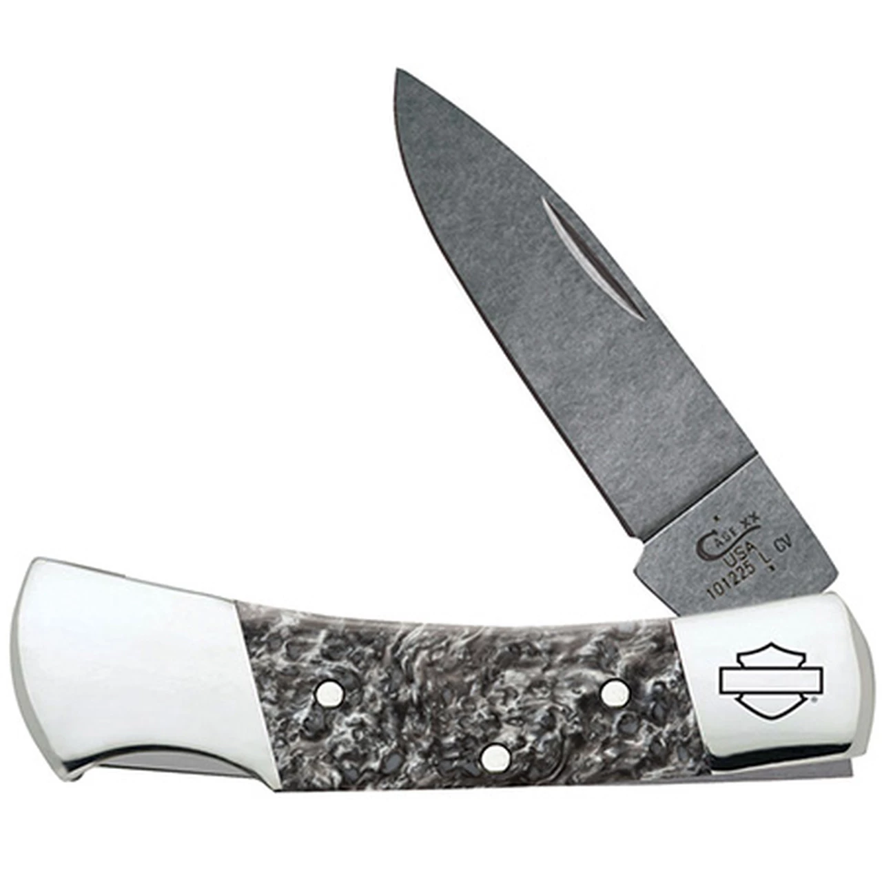 Case Harley Davidson Lockback, 3 ” Closed Length Drop Point Blade, Black Smoke Kirinite Handle