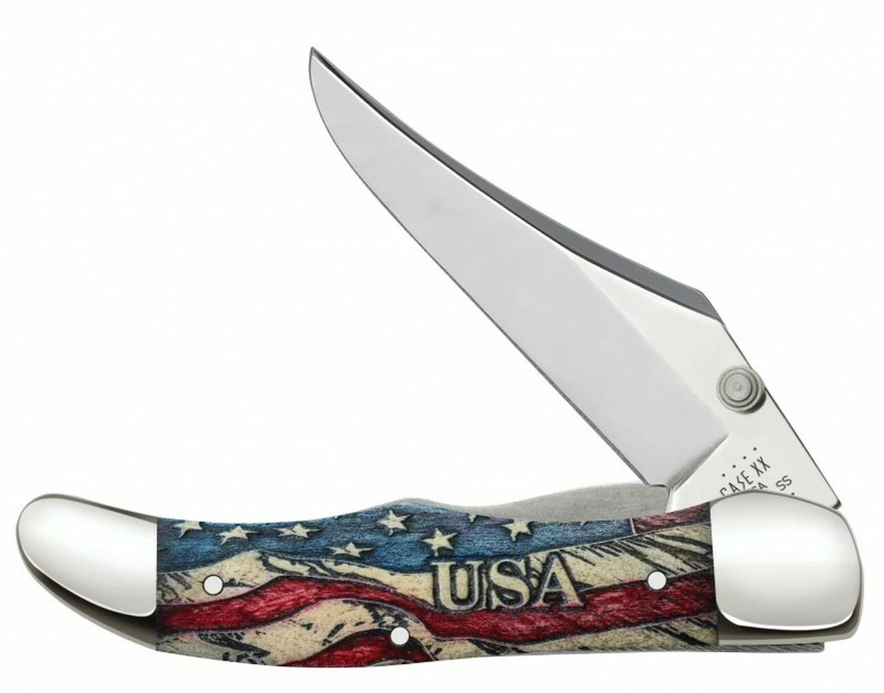 Case salutes the USA with the release of the Vintage Flag Series. Each natural bone handle in the five pattern family is carefully colored in wavy ribbons of red, white and blue. This case series you are sure to find a pattern that embodies your spirit for America.