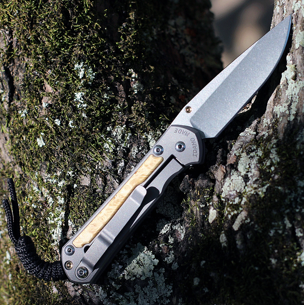 | Overall Length | 6.98″ | Handle Material | Titanium/ Box Elder Burl | |