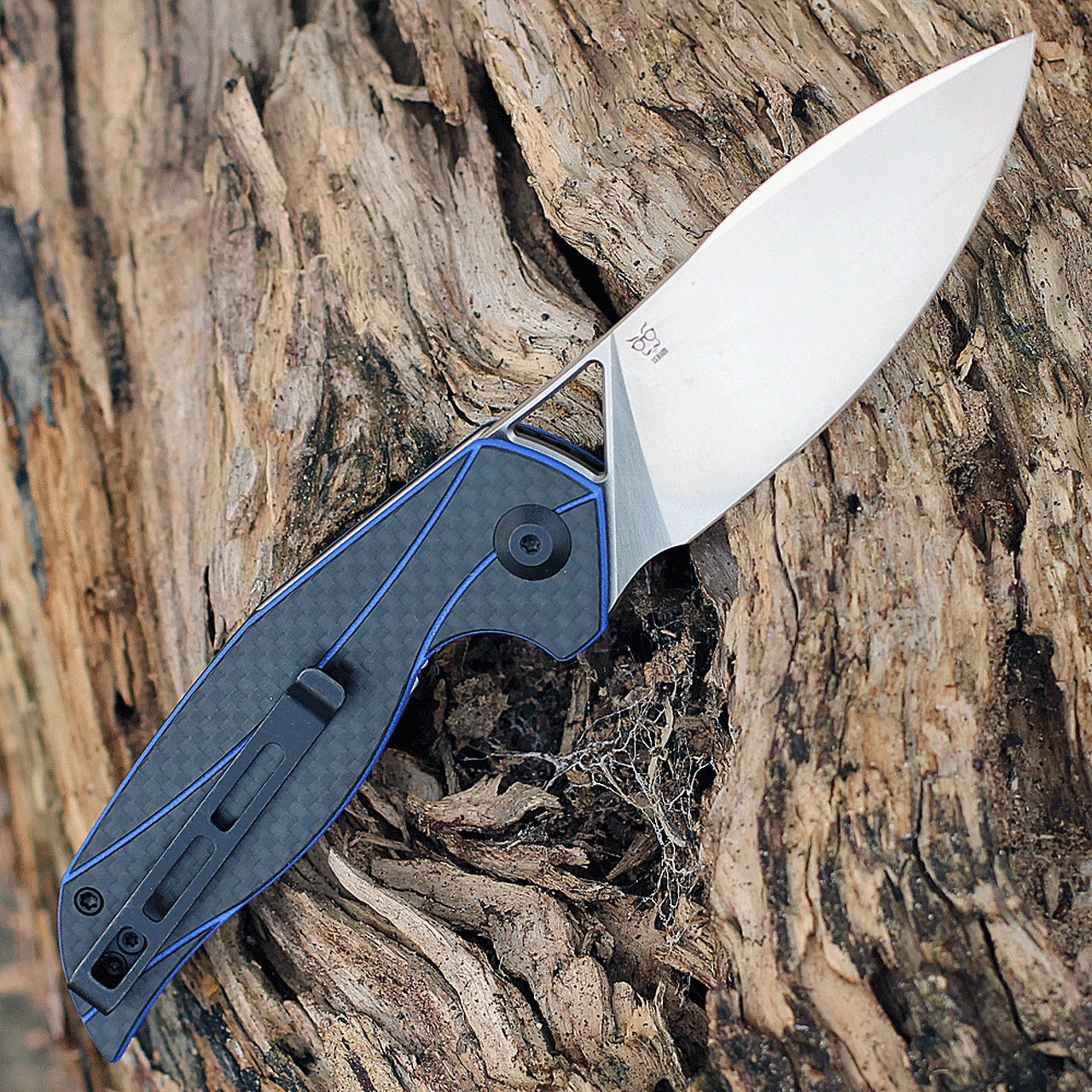 Civivi Anthropos Linerlock C903B, 3.25″ D2 Steel Plain Blade, Blue G-10 w/Carbon Fiber Overlay