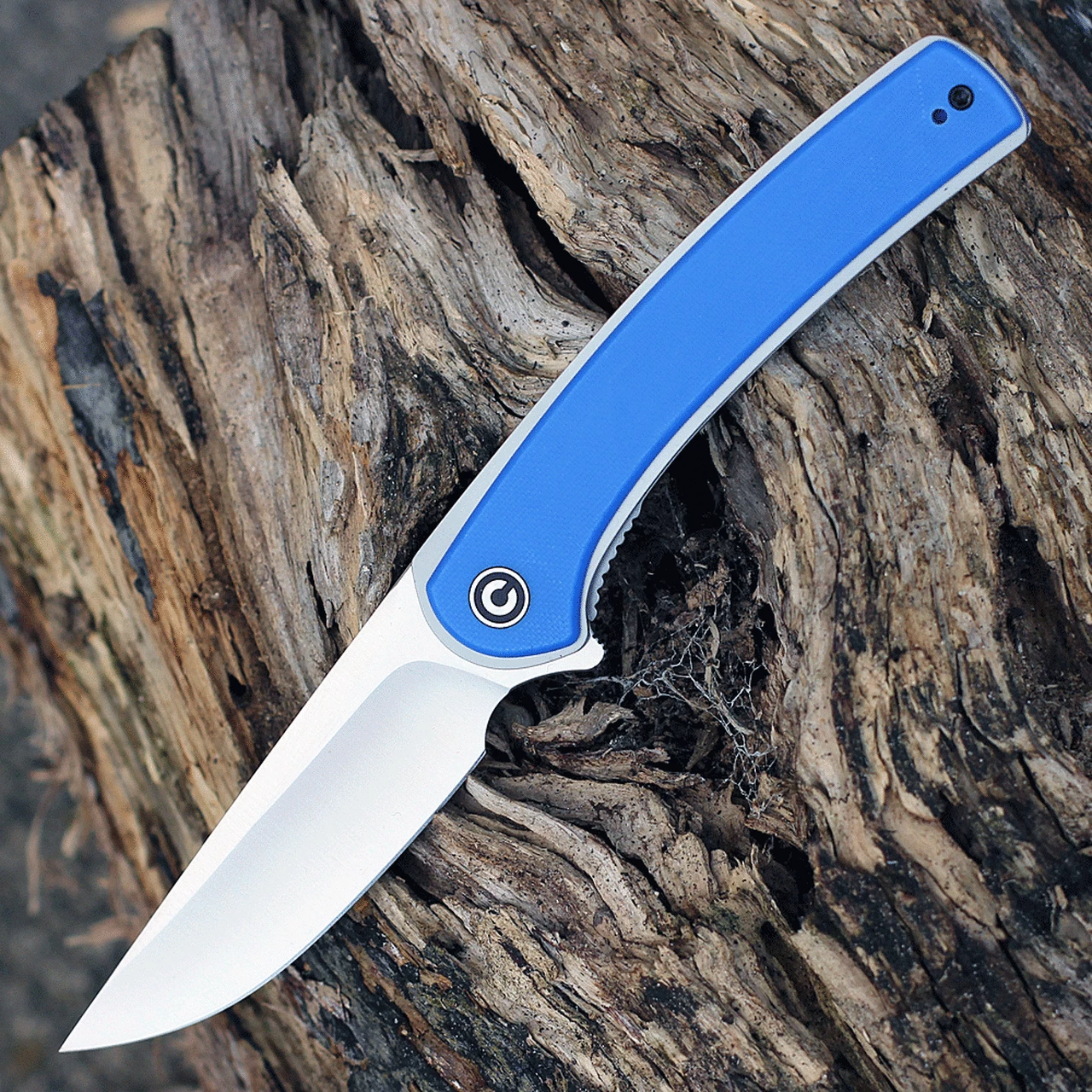 Civivi Asticus Linerlock Folder C2002C, 3.80″ D2 Satin Plain Blade, Blue G10 Handle