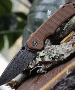 CIVIVI Brazen Flipper Knife C2102DS-1, 3.46″ Damascus Blade, Brown Micarta Handle