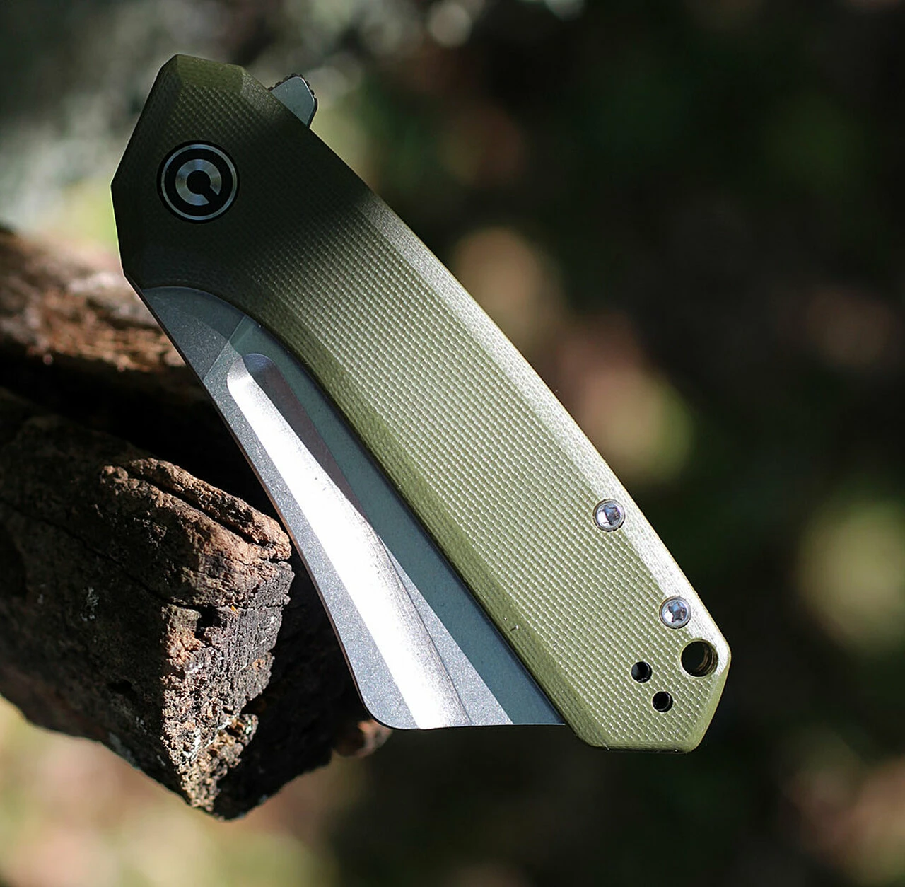 CIVIVI Mini Bullmastiff C2004A, 2.97″ 9Cr18MoV Stonewashed Cleaver Plain Blade, OD Green G-10 Handles