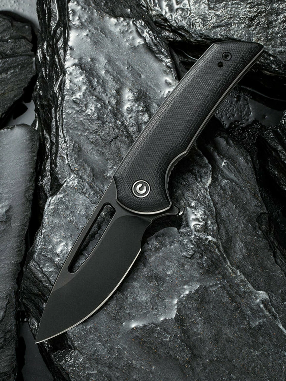 CIVIVI Odium C2010E, 2.65″ D2 Black Drop Point Plain Blade, Black G-10 Handles