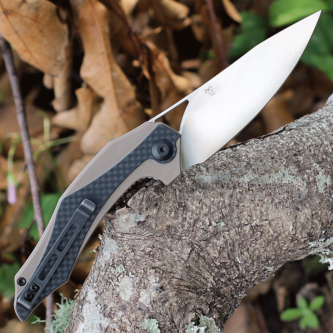 Civivi Plethiros LinerLock C904A, 3.45″ D2 Steel Plain Blade, Tan G-10 w/Carbon Fiber Overlay Hand