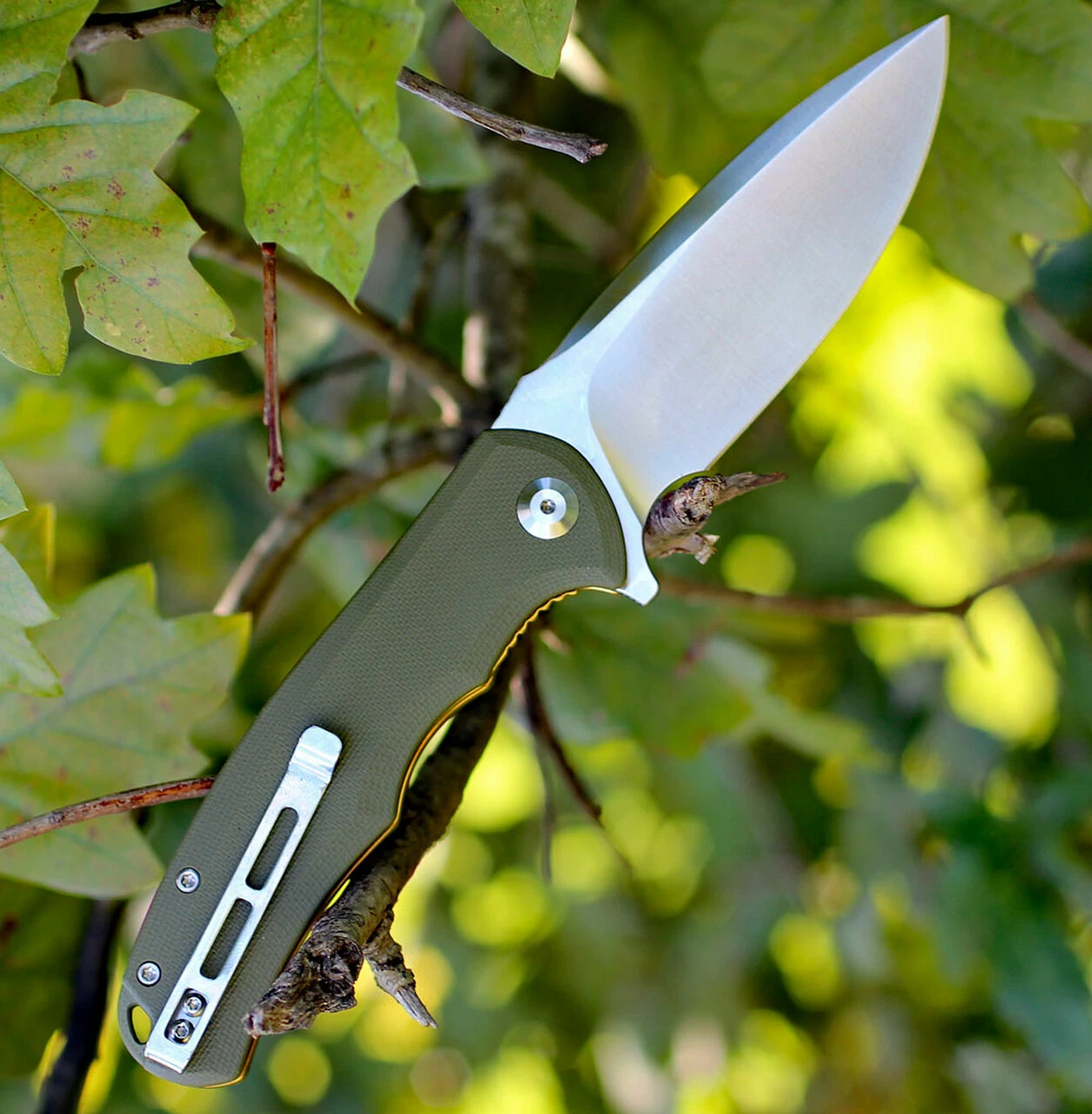 CIVIVI Praxis C803A, 3.75″ 9Cr18MoV Satin Drop Point Blade, OD Green G-10 Handles