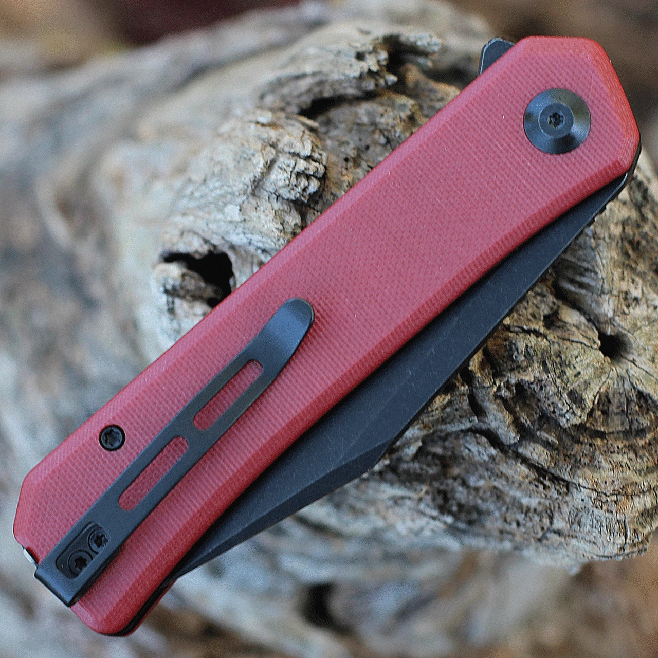 CIVIVI Relic Flipper Knife w/Tweezers (C20077B-2) – 3.48″ Black SW Nitro-V Clip Point Blade, Burgundy G-10 Handle