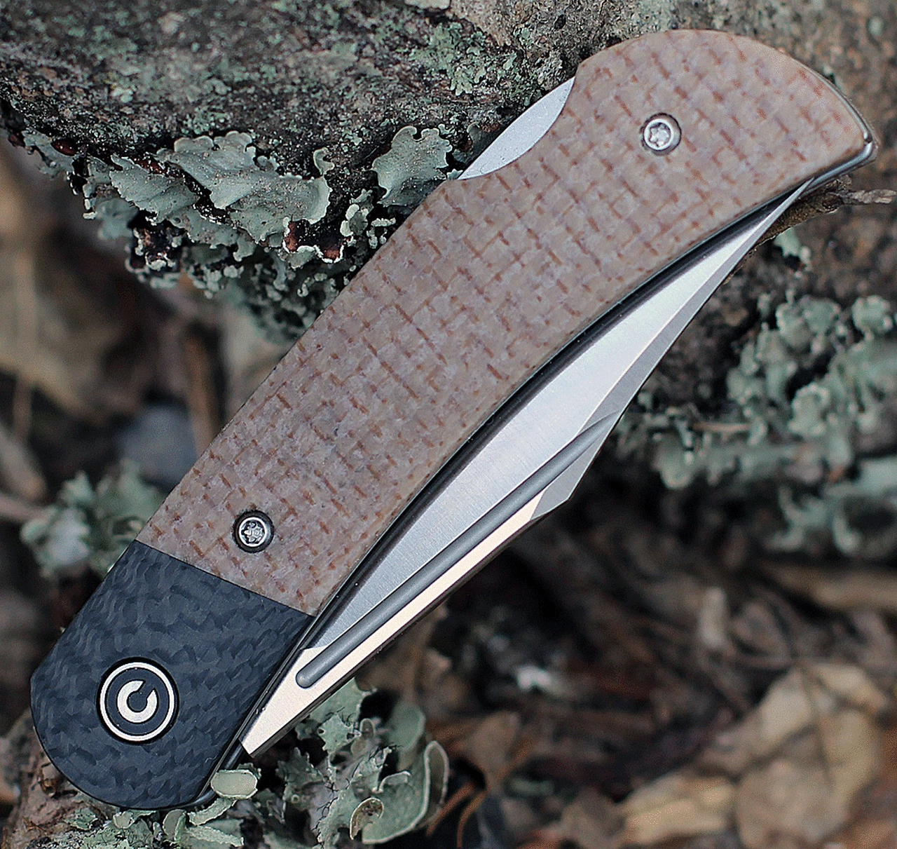 CIVIVI Rustic Gent C914C, 2.97″ D2 Satin Clip Point Blade, Tan Micarta Handle w/Carbon Fiber Bolster