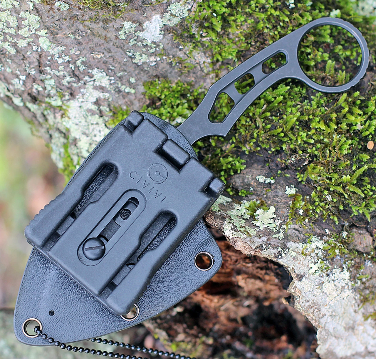 CIVIVI Knives Planck, C2022B, 2.87″ D2 Black Stonewashed Blade and Skeletonized Handle, Kydex Sheath