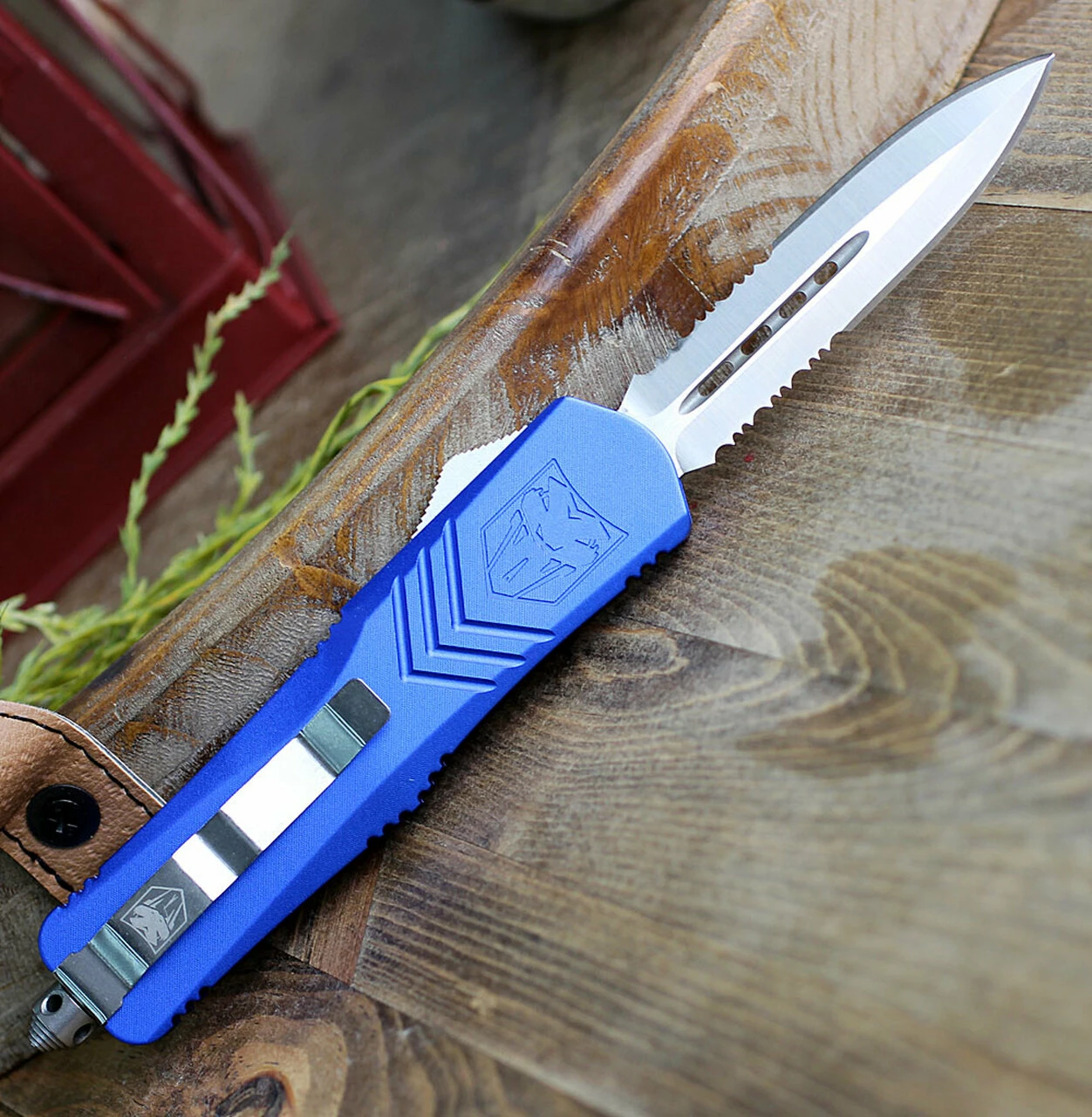 This CNC Machined OTF knife is very sleek and fits nicely in your pocket. The handle is expertly engineered from Aviation Aluminum and features a D2 Steel blade. The knife is ambidextrous as the pocket clip can be switched to either side of the handle depending on your preference