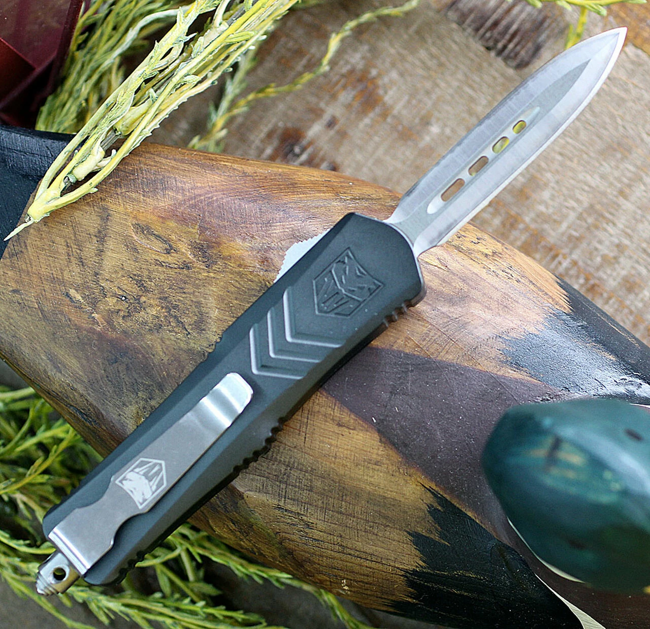 This CNC Machined OTF knife is very sleek and fits nicely in your pocket. The handle is expertly engineered from Aviation Aluminum and features a D2 Steel blade. The knife is ambidextrous as the pocket clip can be switched to either side of the handle depending on your preference