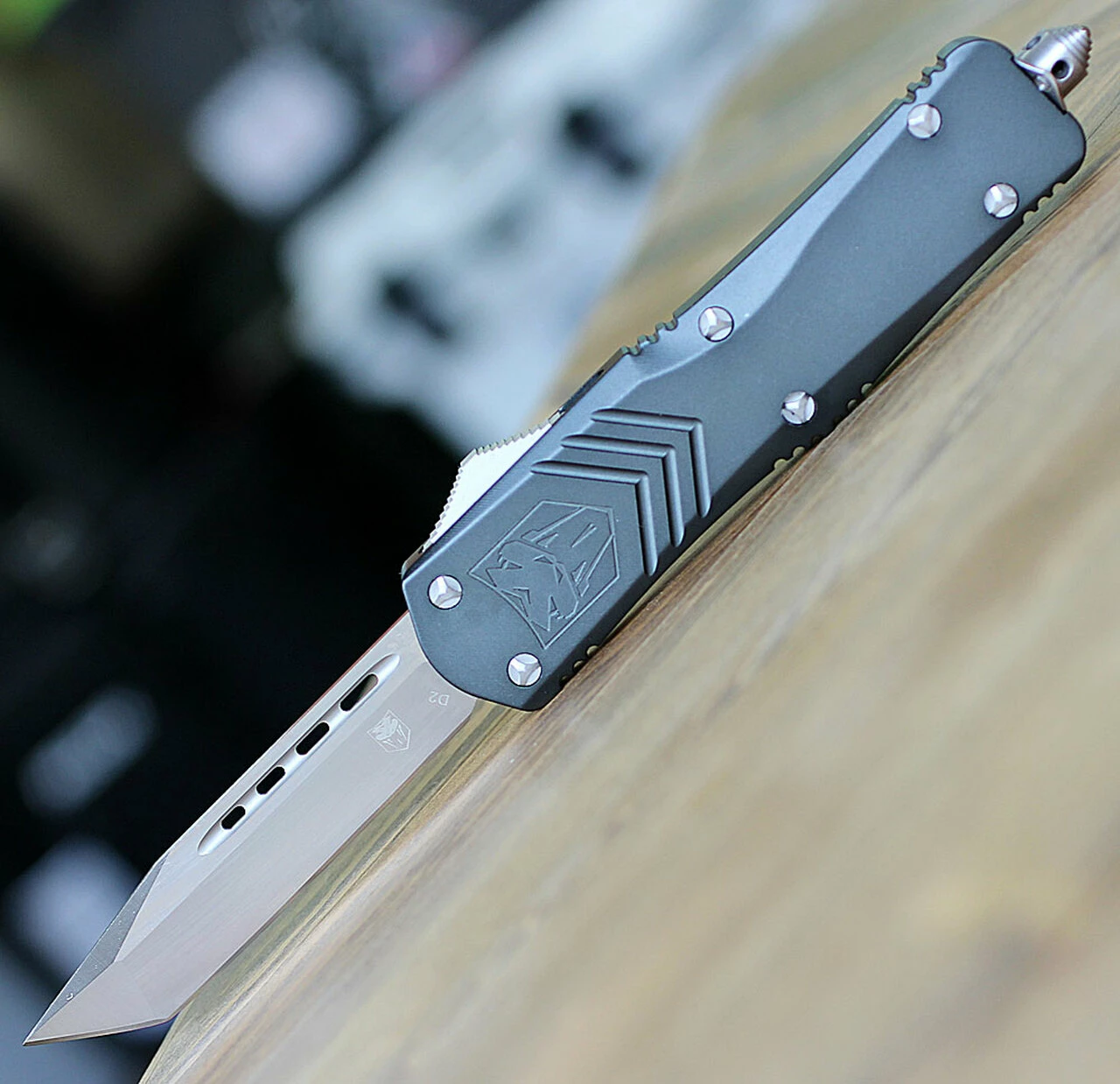 This CNC Machined OTF knife is very sleek and fits nicely in your pocket. The handle is expertly engineered from Aviation Aluminum and features a D2 Steel blade. The knife is ambidextrous as the pocket clip can be switched to either side of the handle depending on your preference
