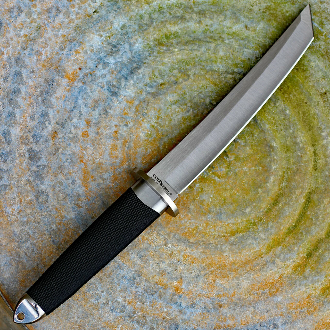 There isn’t a person working in the knife industry today that knows more about the Tanto than Cold Steel does. It was, after all, Cold Steel who invented and popularized this knife style in the early 1980’s. We have spent millions of dollars persuading the public, both through advertising and live or videotaped demonstrations, of the Tanto’s many advantages. We have been producing Tanto’s for more than 30 years now, and there is still no factory or custom knifemaker around making a Tanto that can approach the cutting, slashing or piercing power of one that is manufactured by Cold Steel. All of our Tantos feature a deep lustrous satin finish on the hollow ground blade bevels and a contrasting line grain finish on the blade flats. This technique highlights our state of the art grinding methods and emphasizes the Cold Steel Tanto’s unique appearance. In addition, the Tanto’s come with our famous flattened oval Kraton® handle. The oval shape provides a solid grip and resists rolling or twisting in the hand under hard use, the kind that, over time, would destroy a lesser knife. The use of Kraton® in knife handles is another Cold Steel innovation. Kraton® is an unparalleled space age material that won’t crack or rot and is immune to the ravages of bad weather. The tapered, solid steel pommel is another important Tanto feature that should not be ignored. Lynn Thompson designed it to concentrate the full force of a crushing blow in a small area so that even a moderately powerful blow can be remarkably effective in disarming or otherwise incapacitating an attacker. The Tanto series knives in San Mai® all come with a thick, high quality Secure-Ex™ sheath that is sure to give years of hard service and keep your Tanto at your side, ready for action.