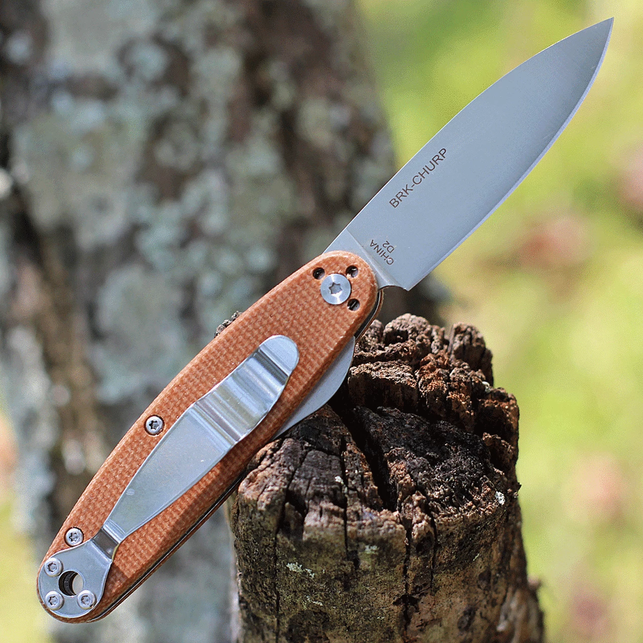 BRK Churp by ESEE – Liner Lock Folding Knife – 2.7″ D2 Satin Drop Point Plain Blade, Olive Green Micarta Handle