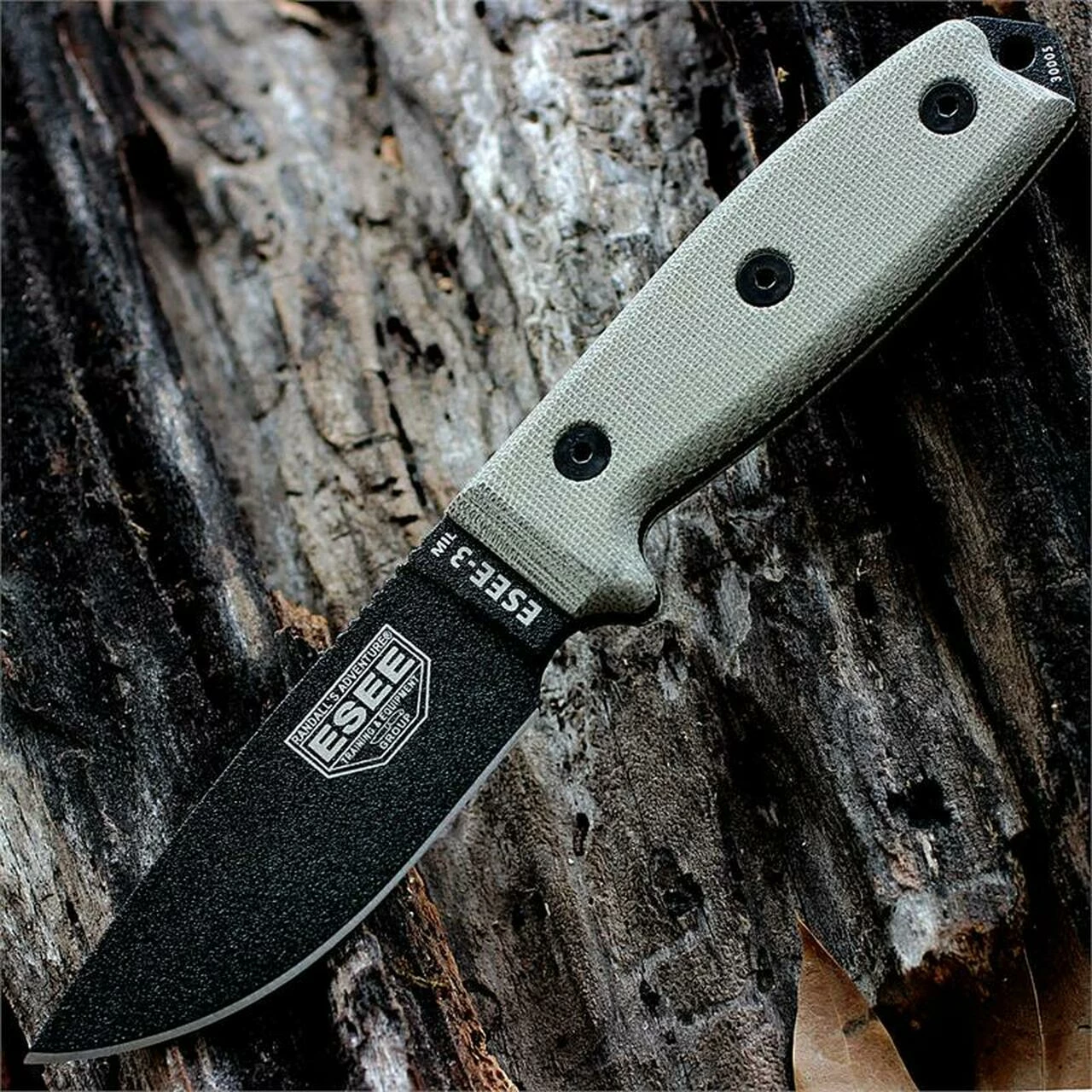 Jeff Randall and Mike Perrin of Randall’s Adventure & Training (ESEE Knives) designed the Model 3 based on the input from soldiers and cops in the field. After a few tweaks to the original concept, it didnt take long for the ESEE-3 to become the tactical fixed blade by which all others are judged. With its Micarta handles and 1/8 thick blade its truly a slicing and cutting machine! The Model 3 also has some of the best carry options in the industry. Whether its clipped inside your waistband or carried on your MOLLE gear, the molded sheathing and Cordura options hold the knife securely and safely, ready to deploy at a moments notice. And while its carried by special teams all over the world, The ESEE-3 also works well as a true utility knife for adventurers, hikers, backpackers or just working around the farm. As with all ESEE fixed blades, the Model 3 is backed by ESEE’s No-Questions-Asked warranty. The ESEE-3 is Jeff Randalls personal favorite among all the ESEE designs.