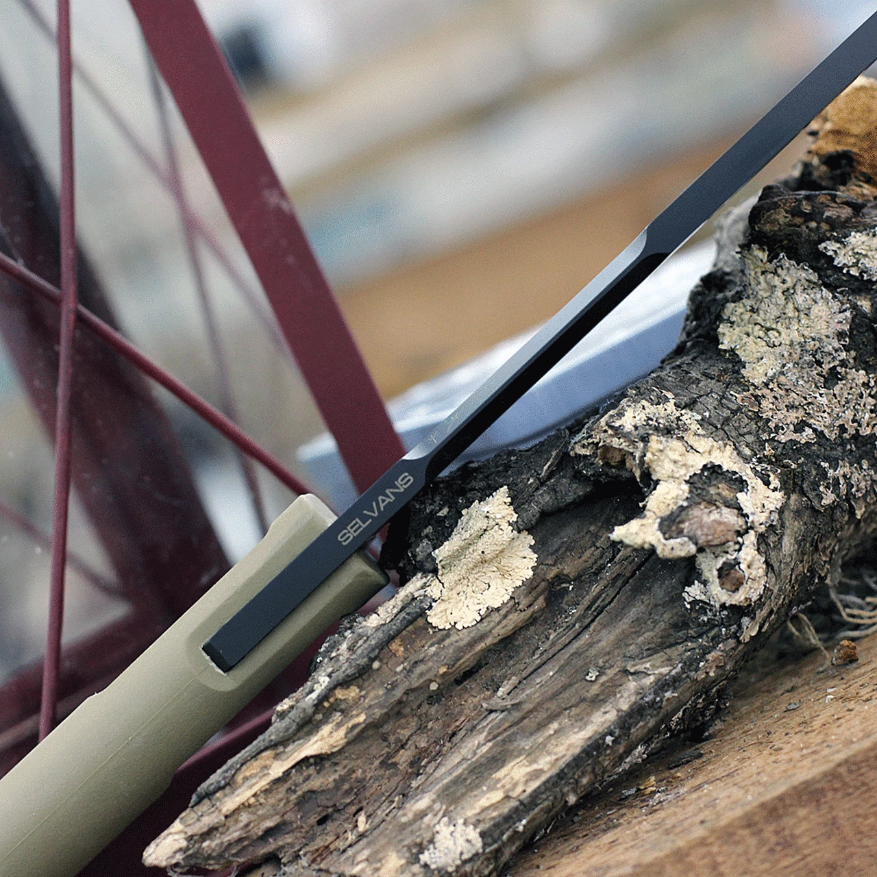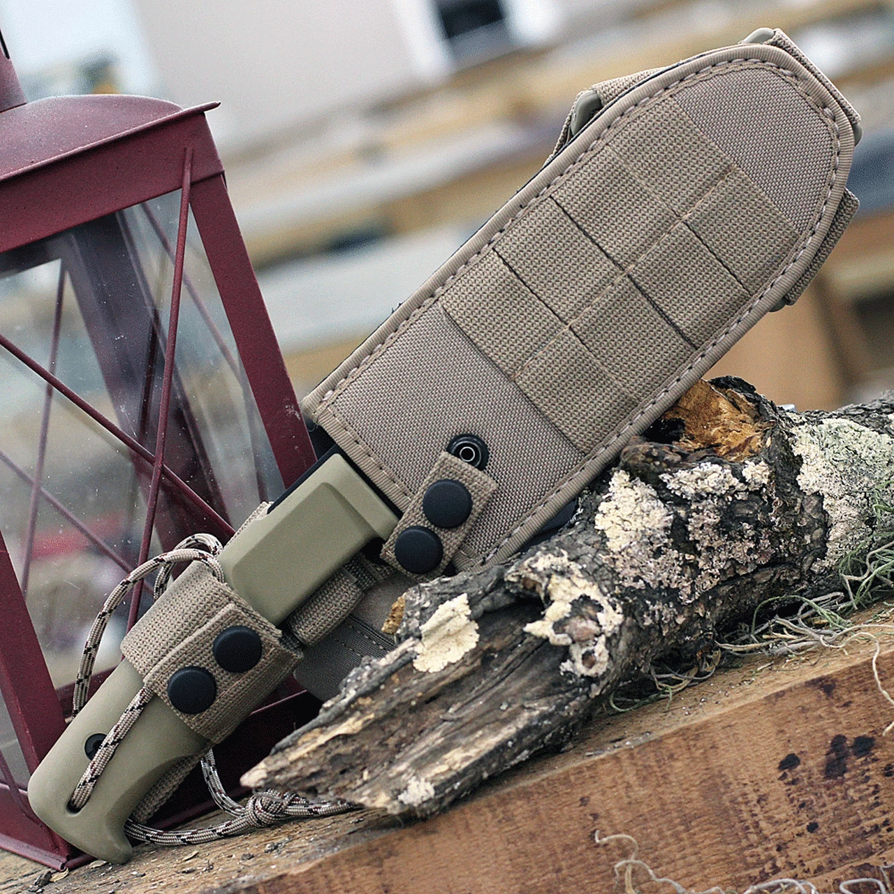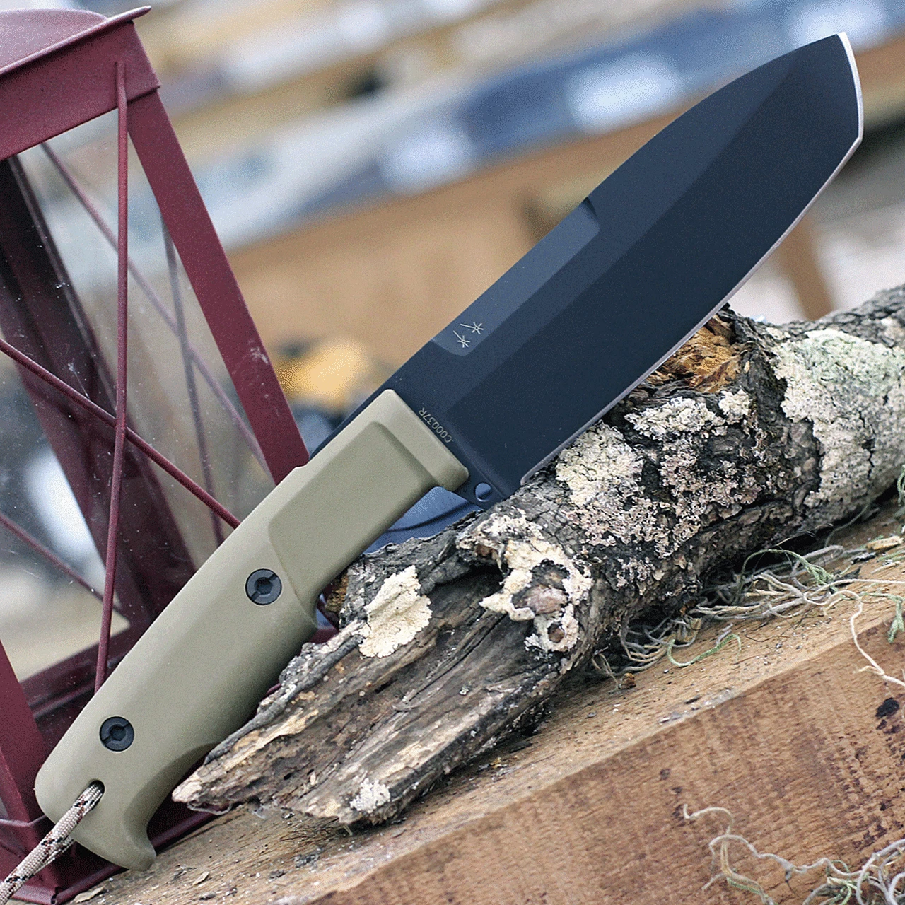 The Slevans developed in cooperation with master instructor Daniele Dal Canto of F.I.S.S.S. (Italian Survival Federation). The project was based on slightly modifying the military survival knife Ontos. The aim was to heighten and increase the performance of the knife as a working tool. A longer handle and a heavier blade offer a better chopping and cutting action. 12.25″ overall. 6 .25″ Bohler N690 cobalt stainless blade with MIL-C-13924 black coating. Desert Tan Forprene handle. Heavy-duty, reinforced nylon belt sheath with adjustable leg strap. MOLLE compatible.